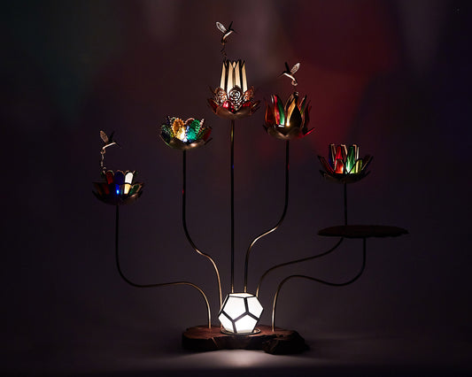 Inspired by the story of the blooming lotus flower, seen as a way of life, the artist created twelve reference chandeliers to enlighten your home with harmony and meaning. Each chandelier comes with its own story and an open invitation to co-create your unique expression of light.
